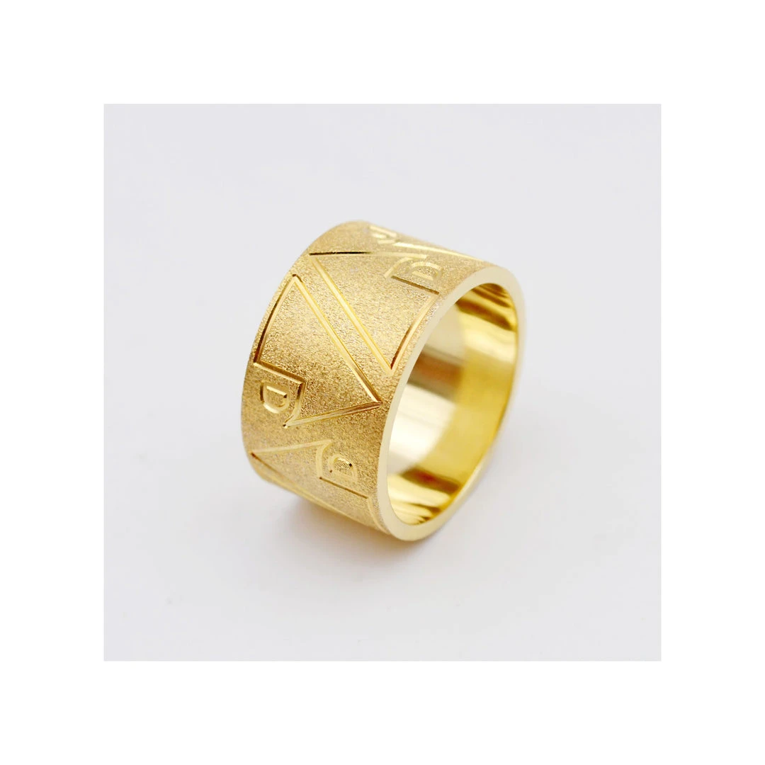 Crafted from gold-tone, has a spinning laser engraved AD logo.