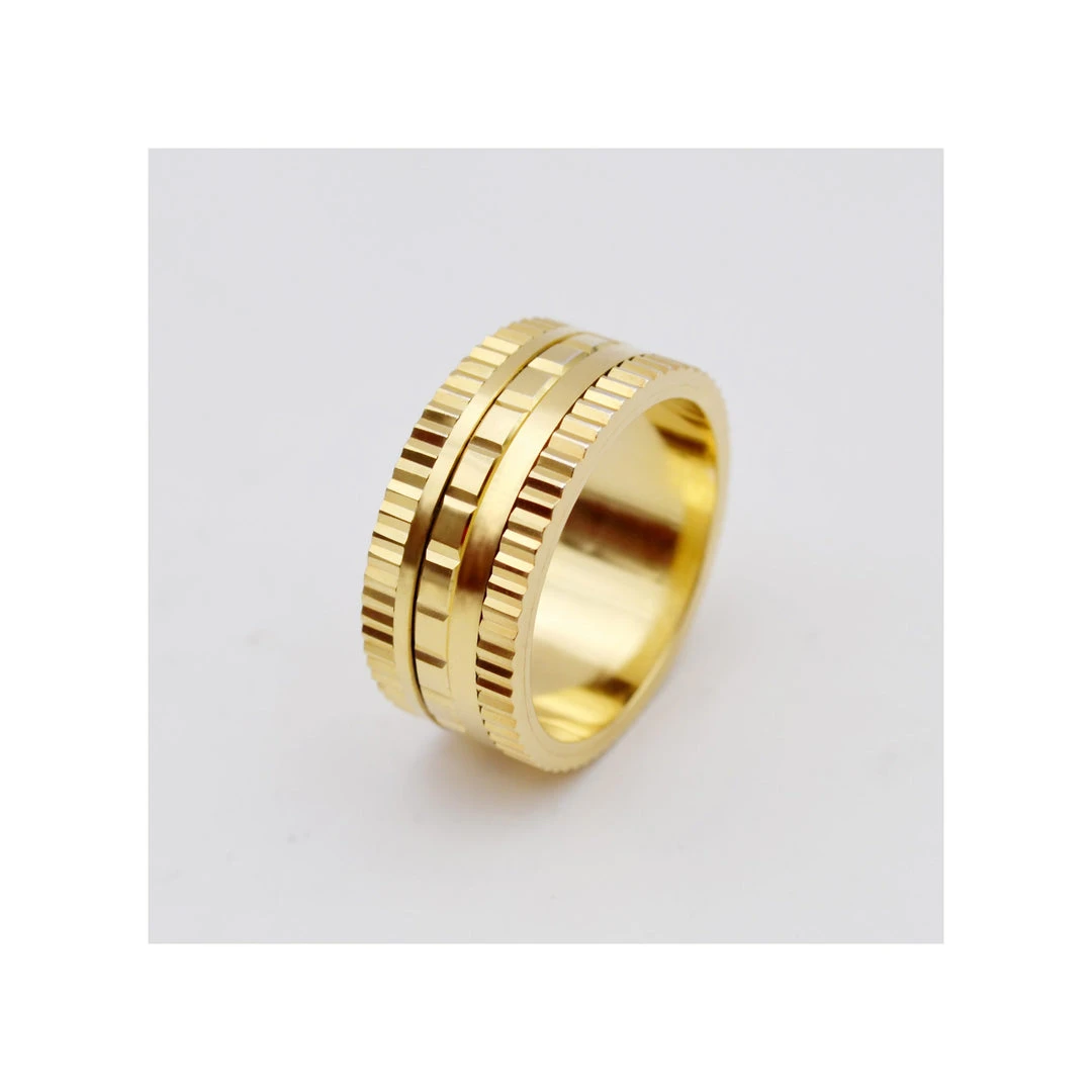 One of the most iconic ring design by Albina Dyla, engraved in lines on a gold-tone band.